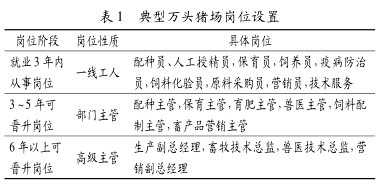 通过实地走访大中型养殖场, 了解畜牧兽医专业毕业生初次就业岗位、 可晋升岗位以及将来可争取岗位的情况。以某大型养猪场为例, 其各阶段岗位种类分布如表 1。结果表明, 随着养殖业的规模化经营的不断发展, 各生产环节对从业人员的专业素质要求越来越细分化、 专业化, 同时也为毕业生提供了更大的发展空间。在设置课程体系时应以岗位为导向。