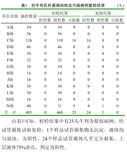 (1)奶牛结核病初检及可疑病例复检结果。 从表2可以看出,对于初检结果可疑的64头牛,间隔60d复查,结果44头判定为阴性,20头判定为阳性。