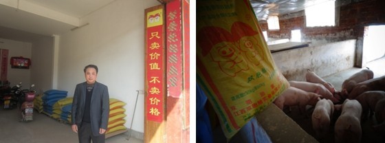 一脸诚实相的潘老板,生意做得可精明了。当年,他发现潭东镇养猪的不少,便萌生了做饲料生意的想法,双胞胎生产厂离得又近,运输费用可省不少。于是,想方设法取得了双胞胎在谭东镇的经销商资格。这一做,就让他不能罢手,一直让他做到现在。其原因就是双胞胎饲料的高性价比,让他收获利益的同时,也收获了农民养殖户的口碑。这才是牵引他真正愿意一直做下去、始终立于市场不败的原因。