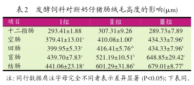 2.1发酵饲料对早期断奶仔猪肠道绒毛高度的影响(见表2)