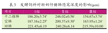 2.2发酵饲料对早期断奶仔猪肠道隐窝深度的影响(见表3)