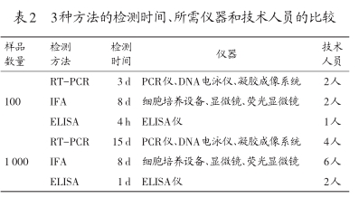1.2.1.4 3种方法的检测时间、 所需仪器和技术人员的比较