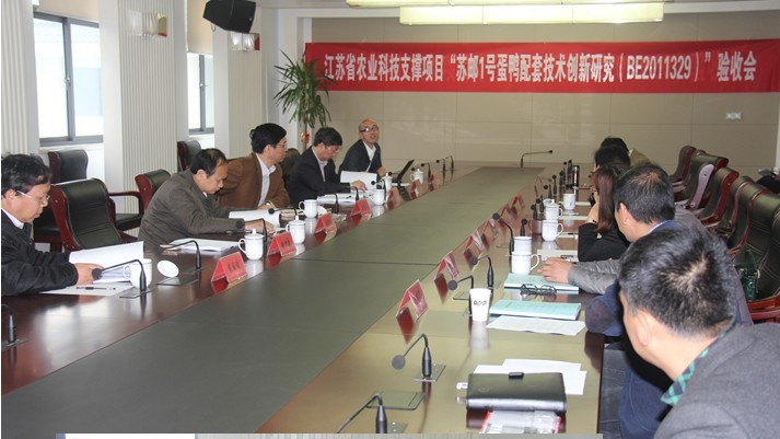 4月12日,受江苏省科技厅委托,扬州市科技局组织有关专家成立验收专家组,对我所承担的江苏省农业科技支撑计划“苏邮1号蛋鸭配套技术创新研究”(BE2011329)、扬州市科技攻关项目“禽产品质量安全检测平台建设和控制技术研究”(yz2010080)和“加工型优质肉鸡配套系的选育与中试应用”(YZ2010050)进行验收。同时,专家组听取了各项目执行情况汇报,审阅了有关资料,经质询与讨论,一致同意三个项目通过验收。