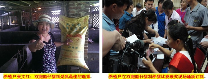 家住广西省玉林市陆川县温泉镇长河村养殖户张文红,家中有50多头母猪,肉猪存栏100多头,用双胞胎饲料效果一直不错。4月中旬参加双胞胎仔猪比赛,拿出几窝仔猪试喂,发现比以前的小猪料要好很多,每头仔猪喂54.8斤仔猪料,仔猪平均有九十多斤,净增重34.3斤,料肉比为1.6:1,价肉比为3.3:1,获得陆川县养猪比赛亚军。她在接受玉林电视台采访说:“以前,我都是用双胞胎小猪料喂猪。今年4月份,双胞胎业务员介绍我认识双胞胎仔猪料以后,通过称猪,每头达到90斤以上,效果非常理想,防拉稀,好管理,增长得快,双胞胎仔猪料是我最佳的选择!”在订料现场,张老板和众多参会养殖户一样订购了双胞胎仔猪料2.4吨,并在现场一举抽得1500元的奖票,她高手得直拍手,称自己是本场比赛最大的赢家,不仅收获了新的养猪知识,还抽中了大奖,可谓一举多得。