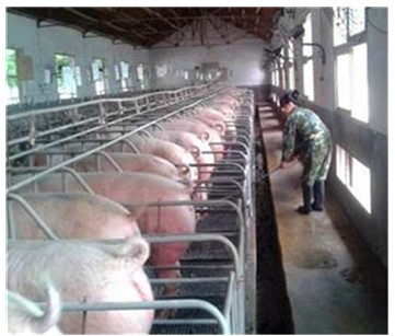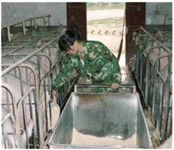 我来得还真是时候啊,刚巧8栋猪舍的饲养员请假回家休息去了,小余和柯炜负责喂养8栋的猪猪,当然也有我的份啊!早晨七点就到了8栋猪舍,一进门,猪猪们就知道我们来给它们送早餐了,大家都集体站起来列队欢迎,有的甚至要跑出来“咬人”啦,我还第一次见这么大的场面,不过想想,饿了一晚上,早晨肯定饿呀,要东西吃有什么害怕的,我们就推着饲料车,开始一瓢一瓢的放到料槽里,猪猪们都是张大嘴巴等着我呢,一时不小心,把手喂到了猪猪的嘴巴里,幸亏它没有咬我哟,因为它们不是肉食动物!不过它们哪里是对我感兴趣啊,它们是看上我瓢里的饲料了!等喂了一栋下来,累得是腰酸背痛啊!小余看着我有点累了,就知会我去给猪猪扫粪,下面左图就是我扫粪的照片哟,很经典啊!终于喂完了,粪也扫完了,看看手机,显示是早晨8点钟,平时在总部这时候才开始上班,不过在这里8点钟之前,都干了很多事情了,看着猪猪们满意的表情,它们应该是向我示意今天的早晨吃得还真够早的,吃得也不错,吃完了,该给它们喝水了,扭动水管,给猪猪们放新鲜的清水喝,它们那个逗啊,喝得“叭叽叭叽”的响,有时候还抬着那可爱的“猪头”瞧瞧我,真逗人啊!
