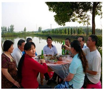 中间这一桌就是我们的技术员队伍,平均年龄不到22岁啊,充满朝气,我好想也能回到22岁的年纪,时光不可能倒流,除非我的速度能超过光速,这还有点可能啊!宁静的湖面倒映着我们欢快的身影,记忆着我们开心的笑容!