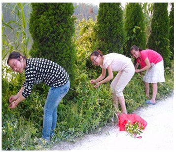 分场的生活其实不枯燥,看看下面的姑娘们,你们会发现,分场的生活也这么多姿多彩。这一张照片是我的杰作呢,下面三个姑娘分别是仓管小凡、会计小方、统计小郭,我们下班后,集体在场区的湖边采金银花呢,养生达人告诉我们金银花有解毒去火的功效,特别适合夏天饮用,所以我们就行动啦,同时也带动了饲养员阿姨们在工作后也加入到我们采花的团队。