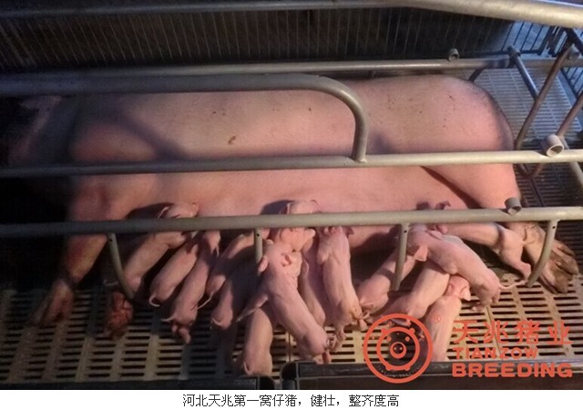 2014年6月16日凌晨四点,伴随着清晨第一抹霞光,天兆猪业分公司河北天兆第一窝长白小猪顺利降生,共产活仔16头,平均出生重1.3公斤,为河北天兆赢得开门红,也标志着天兆猪业将为河北及周边地区养猪户提供更多优质种猪。这不仅是河北天兆值得庆祝的重要事件,同时也再次验证了天兆种猪高繁殖性能的特点,天兆种猪——产得确实有点多。