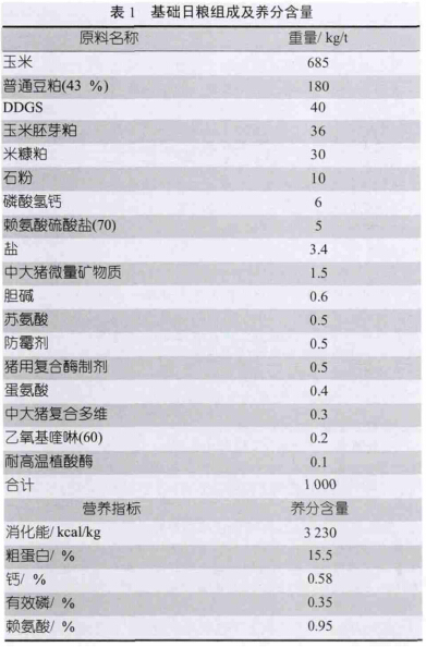 试验设计三个试验组和一个对照组,基础饲粮见表1,具体试验设计见表2。