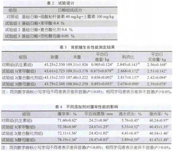 由于抗生素是通过非特异性的杀灭动物肠道中的细菌来实现防病治病的目的的,其作用过程中不仅杀灭了有害菌,还杀灭了消化道中的有益菌,这导致动物消化道菌群处于一种“非正常的压制状态”,长期来看对动物健康及食品安全十分不利。在本次试验中,在基础日粮中添加苯甲酸、复合酸化剂和活性酵母菌能降低料肉比,提高饲料利用率,改善猪肉品质,可以显示出替代部分抗生素的效果。因此,从畜牧业的长期发展来看,开发抗生素替代品,研究无抗生素日粮,具有很好的经济效益和社会效益。