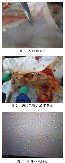 对3头病猪进行剖检,肝脏、肺脏、心冠、肌肉、胸腔浆膜黄染;心肌色白松软;血液稀薄,凝固不良;脾脏肿大呈暗黑色,边缘不整齐。