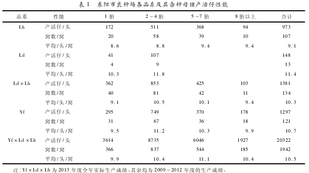 2东阳市良种场引入品系及杂种母猪的繁殖性能