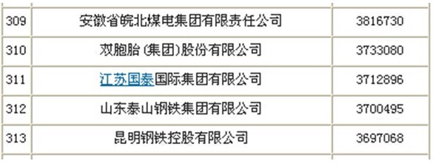9月2日,中国企业联合会、中国企业家协会举办的“2014中国500强企业高峰论坛”在重庆举行,会议当天发布了2014中国500强企业榜单。双胞胎集团再次跻身中国企业500强行列,以373.3亿元荣列第310名,比2013年前进了22名,营业收入增加了65亿元。