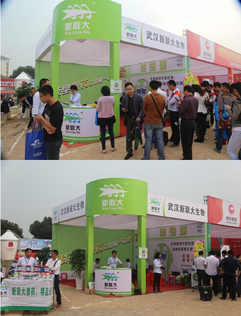 公司展位设计着重体现着新联大生物有限公司的勃勃生机和绿色护航理念。新联大自08年成立以来,拥有兽药粉剂、散剂、预混剂、针剂、消毒剂、杀虫剂等多条国家兽药GMP生产线。多年来董事长童庆平先生坚持以优质的产品质量服务于广大养殖户,为我们全国各地的“猪宝宝”开启绿色健康通道,让它们快乐成长,远离疾病困扰;为养殖户绿色养猪,持续盈利保驾护航。