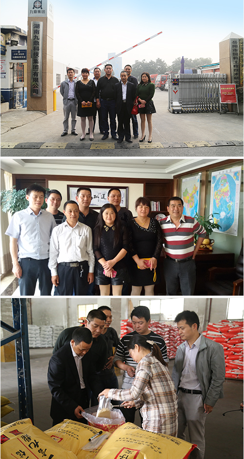 27日上午在湖南九鼎公司工厂厂长古新华、湖北营销公司彭经理的陪同下相续参观了公司生产车间、成品库、原料库;在参观生产车间时古总向客户介绍了公司先进的“牧羊”设备及先进的生产工艺,详细的讲解了浓缩料、配合饲料生产线;