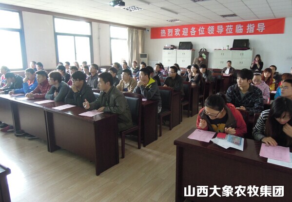 在宣讲活动中,集团人力资源部董慧敏、宋振铭,食品事业部深加工线路王培民分别介绍了山西大象农牧集团发展史、人才培养、企业愿景、食品深加工产业发展及2015年的招聘计划。山西农业大学毕业生暨猪产业发展部总经理陈文斌现身说法,结合自己二十余年的职业生涯,与同学们分享了对畜牧行业的认知与感悟,就职业发展中的关键点与同学们做了交流。招聘会现场座无虚席,同学们对企业充满兴趣,积极提问,养殖、饲料事业部的吕卫国与翟润生分别回答了同学们提出的问题。
