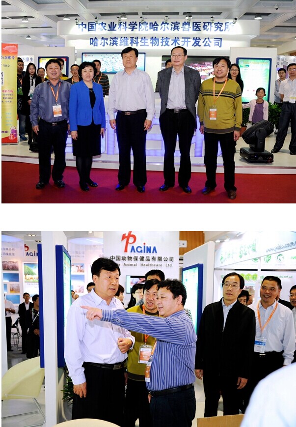 中国农业科学院哈尔滨兽医研究所孔宪刚所长受邀参加大会;哈尔滨维科生物技术开发公司由付朝阳总经理、熊永忠副总经理带队参加了本次大会;付朝阳总经理出席中国兽医用药及药业产品博览会暨新品发布平台开幕式。农业部于康震副部长视察了公司展位,与公司总经理付朝阳等领导亲切交谈并合影留念;于康震高度评价了我公司在动物疫病防治科研工作中所获得的成果,为我公司今后发展提出了宝贵的指导意见。随后总经理付朝阳接受了多家媒体记者的采访,凸显了公司作为行业龙头企业所承担的社会责任感和使命感。