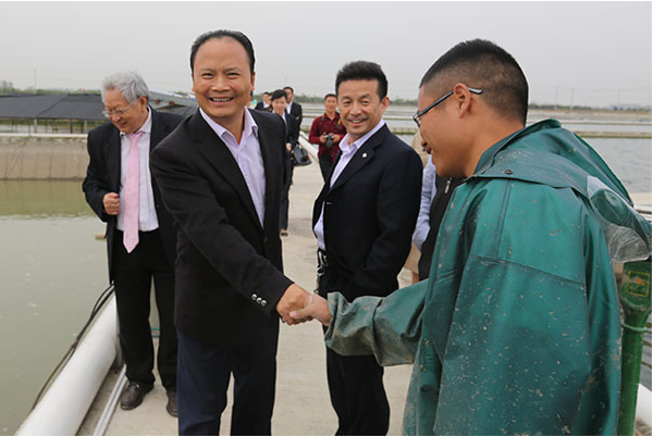 10月27日下午,在股份副总裁、市场营销总监兼技术总监王尚文,股份副总裁、四川片区总裁兼四川通威总经理陈平福,股份设施渔业工程研究所名誉所长、国务院特殊津贴专家吴宗文,股份总裁助理、技术中心办公室主任刘辉芬,通威研究院副院长高启平等陪同下,十一届全国政协常委、通威集团刘汉元主席一行到四川通威“365模式”科学养殖基地,视察基地的运行情况,并与通威养殖示范户亲切交流。