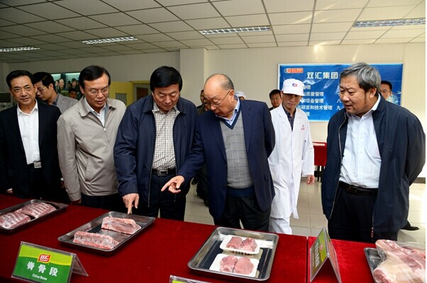 在双汇集团第一工业园,姜建初参观了现代化的生猪屠宰、分割生产线。了解到企业收购美国史密斯菲尔德公司后,已成为全球最大的猪肉加工企业,姜建初对双汇集团蓬勃的发展态势表示赞赏。看到企业屠宰、分割实现了全程同步检测,并在全行业第一个做到了“瘦肉精”在线头头检,姜建初称赞“双汇此举体现了一个大企业的责任和担当”。