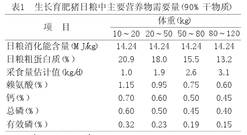 新疆商品猪以“杜长大”或“杜大长”三元杂交组合为主,主要营养需要参照《猪营养需要》(NRC第十版,1998),见表1。