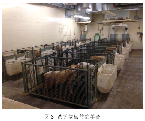 我们先后在美国的3所大学听课,第一所是内布拉斯加州的林肯大学。林肯大学的动物科学楼很漂亮,有宽敞的阶梯教室和人性化的座椅。我们在那里听著名的DonLevis教授给我们讲授《管理好后备母猪提高其终生生产率》,教授讲的内容深入浅出,适用性很强。课间,助理带领我们去教学楼里的动物舍(包括母猪产房、保育猪舍、肉羊舍、肉牛舍和奶牛舍),里面饲养着猪和带着瘘管正在反刍的肉牛、奶牛、绵羊(图3),涉及动物科学研究的动物发育、生长、繁殖、泌乳、饲料营养、饲料消化率、饲料转化率、消化代谢试验、性能测定等都可以在课堂边再现和验证。看着身边带瘘管的牛和羊,我不禁感叹,国内动物科学专业培养的大部分学生(甚至包括农村生源),来到猪场不认识猪的品种和性别,不知道鸡的三层阶梯笼啥样,虽然理论知识不少,但尽是纸上谈兵,问题是动物科学本是一门应用科学,如果连猪跑都没见过,又如何对付猪蹄呢。随后的理论课大家听得格外认真,除了满怀对教授的敬佩外,还确信教授所讲的数据都是经过验证的、可信的。