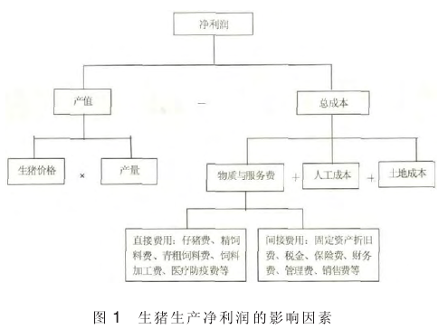 生猪生产净利润的构成因素,按照净利润计算公式第一层次是产值和总成本,同时可以进行进一步分解(图1)。