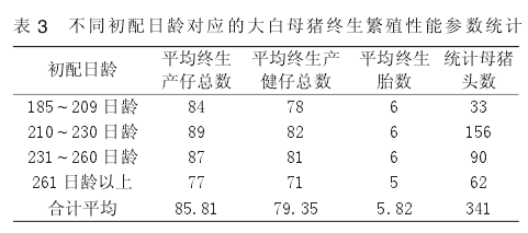 2.3不同初配日龄对加系大白母猪终生繁殖性能的影响