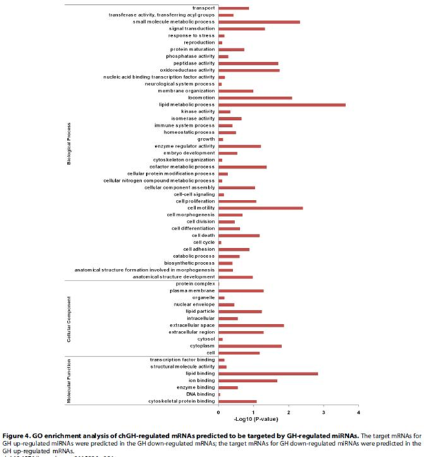 研究者选取4周龄大小的母鸡为研究对象,分离培养鸡原代肝细胞,分别用GH和PBS处理鸡原代肝细胞后进行转录组测序和small RNA测序,进而研究体外条件下GH对鸡肝细胞基因表达的影响。研究发现GH除了能够促进个体生长之外,在肝脏脂代谢过程中也有非常重要的作用。GH通过调节母鸡肝脏中脂代谢相关的mRNA和miRNA的表达来调节脂代谢。