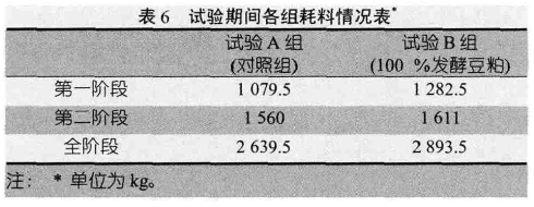 试验期间各组猪的耗料情况见表6。
