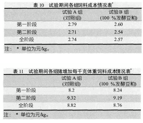 试验期间各组饲料成本情况见表10。