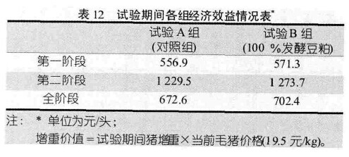 试验期间各组经济效益情况表见表12。