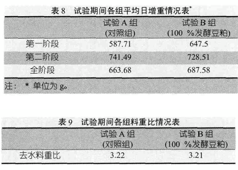 表9分析,A组在试验总体期间,料重比3.22,B组料重比为3.21,B组比A组在料重比稍低,无显著差异。
