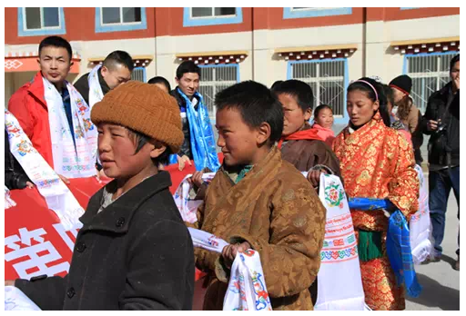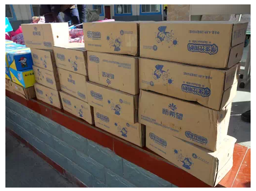 随后,新希望乳业代表发言讲到:“这一次色达一行我们给小朋友带来了20箱衣物,都是通过企业内部自发捐赠的,乳业的叔叔阿姨听闻色达县孩子们生活条件十分艰苦后,便把自家孩子的衣物都打包整理好,由我这次一起带过来。还有通过官方微信发起的“转发即送一盒奶”活动,我们的粉丝非常有爱心,共集到638条转发,所以我这次带着27件(共648盒)学生奶,希望让孩子们喝上牛奶,补充营养。下一步,我们已落实好供应商,12月份就会为孩子们安装太阳能热水器,让孩子们用上热水,希望我们的爱,能让孩子们的冬天多1°C,温暖他人,快乐自己,我们一直在行动。”