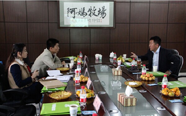 养殖基地取景完成后,集团董事长带领栏目组来到基地会议室,观看阿妈牧场系列宣传片,感受阿妈牧场的企业文化和经营理念并展开讨论,栏目组对阿妈牧场的精湛技术装备,先进的管理理念,人性化的企业氛围做出了一致好评,CCTV影响力对话栏目与阿妈牧场农业集团达成合作伙伴。(阿妈牧场)