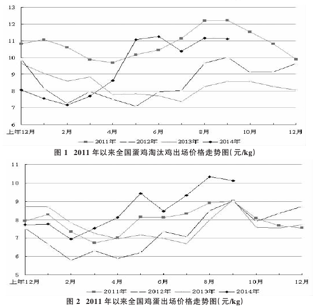 2014年年初活禽、鲜蛋出现滞销,价格下跌,产品积压,亏损严重,导致养殖户不得不杀禽减苗、杀禽减损。3月份以后市场行情看好,养殖开始效益转好。5月15日养殖户鸡蛋收益2元/kg,罗斯308肉鸡养殖户每只鸡可盈利6元左右。由于三季度均价与5月15日相当,养殖户收益基本维持5月15日