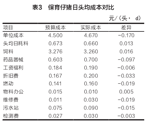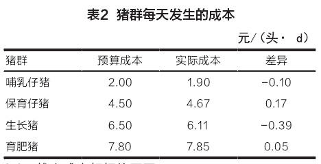 表2对比可以看出,保育仔猪、育肥猪成本超出预算标准,因此,保育仔猪、育肥猪猪群就是我们成本控制的方向。