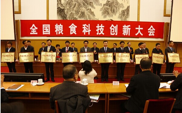 随后,为树立科技兴粮典型示范,推动科技兴粮示范单位规范化建设,大会宣布了首批10个“科技兴粮示范单位” 并举行了授牌仪式。牧羊有限公司作为民营装备生产企业,3次获得“国家科技进步二等奖”,累计申请各类专利780多项,其中发明专利58项,科技创新能力强且业绩显著,在推动行业科技进步方面作用明显,荣获“科技兴粮示范单位”。