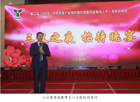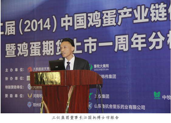 三仪集团董事长江国托博士应邀出席会议并作《中国蛋鸡养殖业的未来空间与发展机遇》报告,江博士的报告包括“中国下一轮蛋鸡养殖业更高级别的竞争需要顶层设计;蛋鸡养殖业的环境评估和建设与发展机遇;蛋鸡种源健康与发展机遇;蛋鸡营养与发展机遇;三仪集团的生物技术产业”五大方面,系统解读近年来中国畜牧业结构发生的巨大变化和环境对养殖业的影响,同时就三仪海陆空消毒剂、生物饲料、DFF等核心技术进行介绍,与会代表对江博士的报告内容不时报以热烈掌声,并对三仪产品表现出浓厚兴趣。