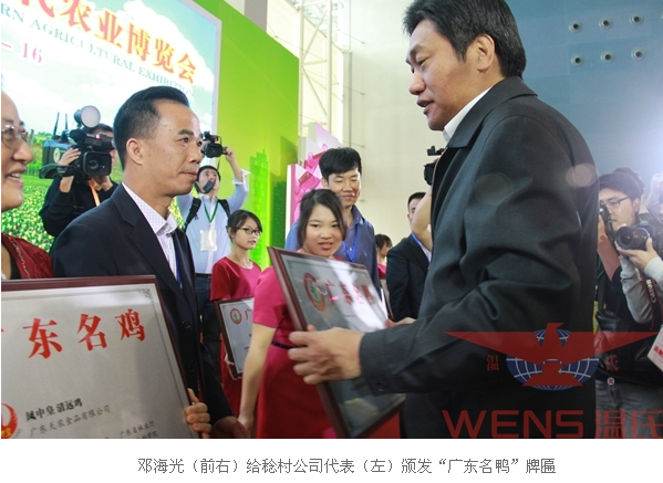 广东省副省长邓海光为十大名牌系列农产品生产企业代表授牌,鼓励企业将优秀品牌不断发扬光大,发挥企业质量管理的示范带动作用。