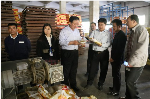 11月18日,黑龙江省穆棱市王副市长、畜牧兽医局宁局长、商务局张局长、工商行政管理局张局长一行组成的考察团千里迢迢来到湖南九鼎公司考察,集团投资管理委员会主任刘志宏、湖南九鼎公司湖北区营销副总徐波、人力行政部总监陈灿、工厂厂长古新华热情接待了王副市长一行,并陪同参观了王家畈工厂。