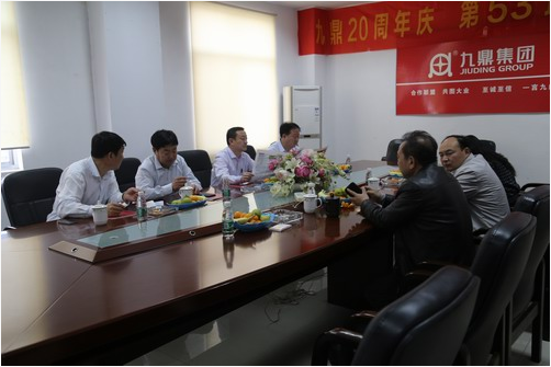 参观过程中,考察团全面了解了九鼎生产工艺及产品生产过程,并仔细地询问每一处细节。在会议室,刘总就九鼎的基本情况以及发展愿景为王副市长进行介绍。此次考察团一行来到湖南九鼎主要是看好九鼎的发展前景,并代表当地政府欢迎九鼎到黑龙江投资建厂。