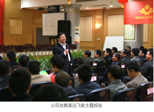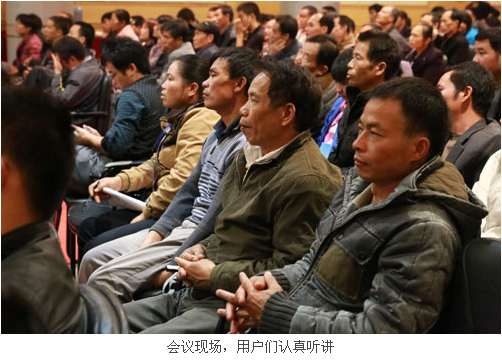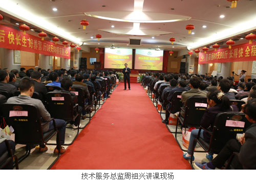 研讨会由贺梧销售公司总经理肖桥忠主持。公司副总裁高远飞做《快乐养猪 轻松赚钱——打造每斤六元肉猪成本目标》的主题报告。高远飞分析如今养猪业趋势:散户越来越少,养猪规模越来越大,养猪条件越来越好,品种越来越优质,对养猪精细化管理要求越来越高,最终才能越来越盈利。面对这种行业趋势,养猪成本的高低成为了养猪户是否被淘汰的门槛。扬翔公司通过喜扬扬高档优质饲料及精准的点对点技术服务帮助用户充分发挥饲料的价值,帮助用户养猪80天达80斤,155~165天出栏体重达220斤以上,最终实现养猪成本6元/斤。扬翔公司以喜扬扬高档饲料为核心,通过种猪、猪精、设备、动保、管理、服务、技术等全方面的配合为养猪户提供养猪整体解决方案,已经具备从技术上、成本上领先行业的能力,具备系统化促进养猪赚钱的能力,关键在于养猪人是否能有效的与公司配合,共同向6元/斤的肉猪成本迈进。