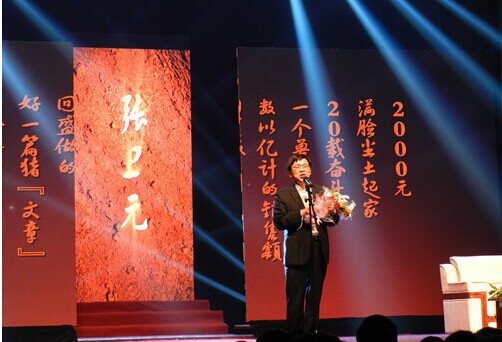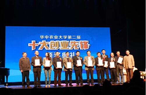 2000元满脸尘土起家/20载奋斗/一个兽药王国/数以亿计的销售额/回盛做的/好一篇猪“文章”/两个奖学金/行业领跑者张卫元/寸草报得三春晖!当主持人念完颁奖词,张卫元从幕布墙内闪耀登场,现场掌声雷动,气氛热烈。在接到奖杯和鲜花的同时,张卫元三句“感谢”表达了对母校华中农大的深深情谊,他讲到:“感谢学校领导和老师的培养,感谢同学们和校友的互助,感谢学校给予的这份荣誉,作为一名华农人,我以华农为荣,师生之情、同学之谊让我一辈子感恩,我和我的企业要做出更大的成绩以报母校之恩!”