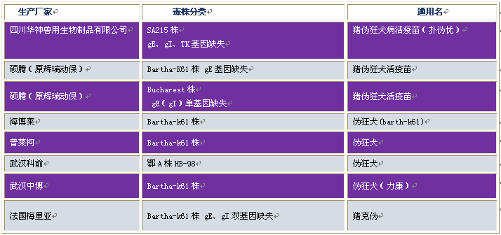 市面流通伪狂犬疫苗毒株分类: