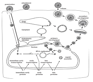 PRV属于水痘病毒属,α疱疹病毒亚科,目前只有一个血清型。病毒分离株最初通过特异性序列的内切酶剪切后的限制性病毒基因进行分类确认。鼻腔黏膜和口腔是主要的感染入侵部位,结膜感染可能导致动物的快速发病。孕期PRV可通过胎盘垂直传播,主要发生在孕期后3月,也可通过初乳传染给仔猪。感染猪所有的身体分泌物、排泄物和呼吸物中都含有高浓度的PRV。在病毒血症和临床症状出现之前,病毒在感染后1-2d开始排毒,2-5d达到高峰,可持续17d。