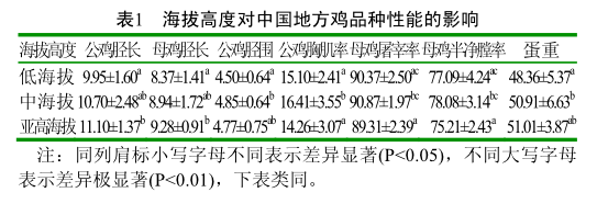 2.1不同海拔高度对中国地方鸡品种性能的影响