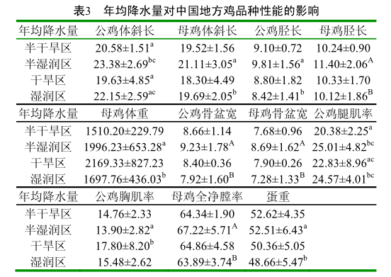 2.2不同年均气温对中国地方鸡品种性能的影响不同