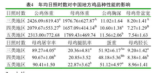 2.4不同日照时数对中国地方鸡品种性能的影响