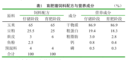 1.2.1试验动物饲养管理试验期共计125d,其中预饲期7d,试验期118d。试验组和对照组的猪都采用群饲方式饲喂,育肥猪自由饮水,饲料饲喂3次/d,饲料喂量以无剩余为原侧,记录每日每次的饲喂量,并于2009年12月7日进行了一次中期称重,与试验结束时再进行一次空腹称重,记录称重结果。并根据记录,计算日增重、料重比、育肥效益等内容。