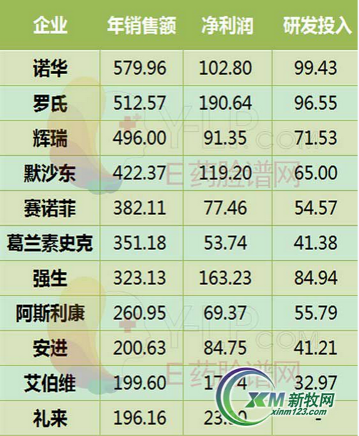 最重要的是,三大主要指标:年销售额、净利润率、研发投入。这是脸谱君认为最能够显示制药大佬们肌肉的一项硬比拼。